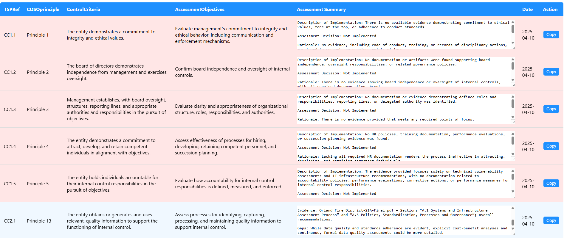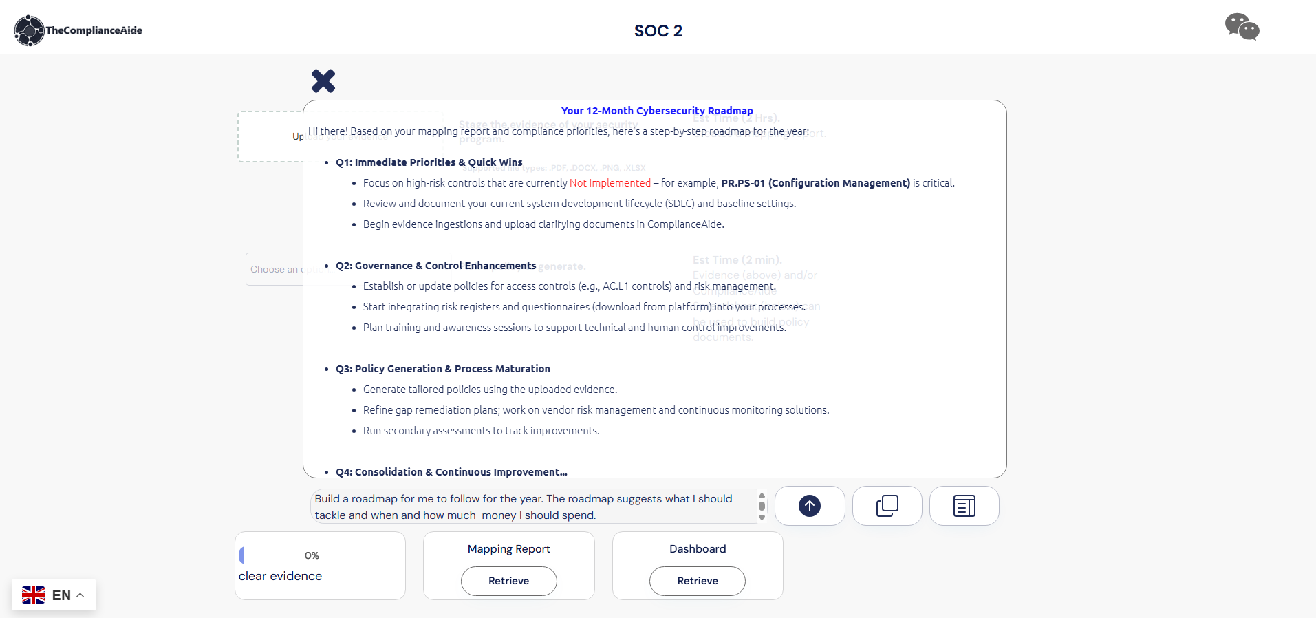 Risk Assessment (Mapping Report): This report explains how your organization addresses the control, rates the 'implementation' of the control and provides a gap assessment.